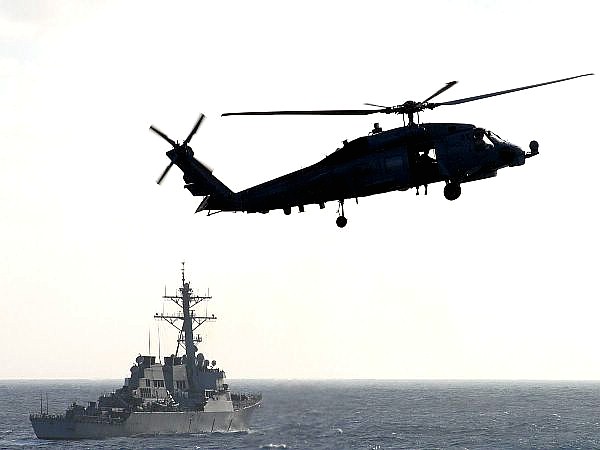 | 37k | Mediterranean Sea March 13 2003, an HH-60H Knighthawk assigned to the Proud Warriors of Light Helicopter Anti-Submarine Squadron Four Two (HSL-42) patrols the waters astern of the guided missile destroyer USS Arleigh Burke (DDG 51). | Fred Weiss | |