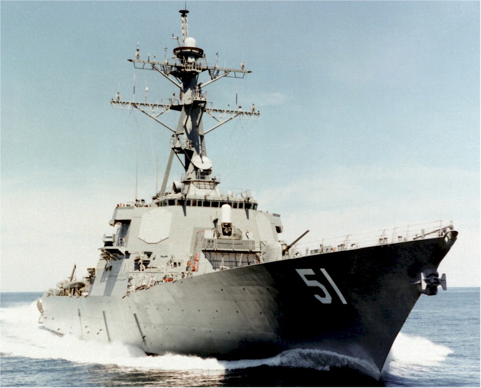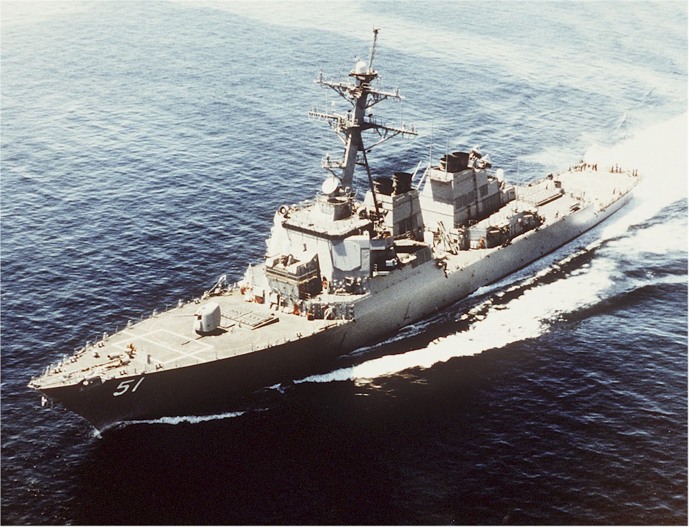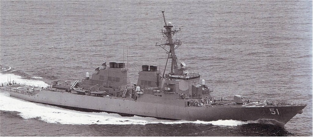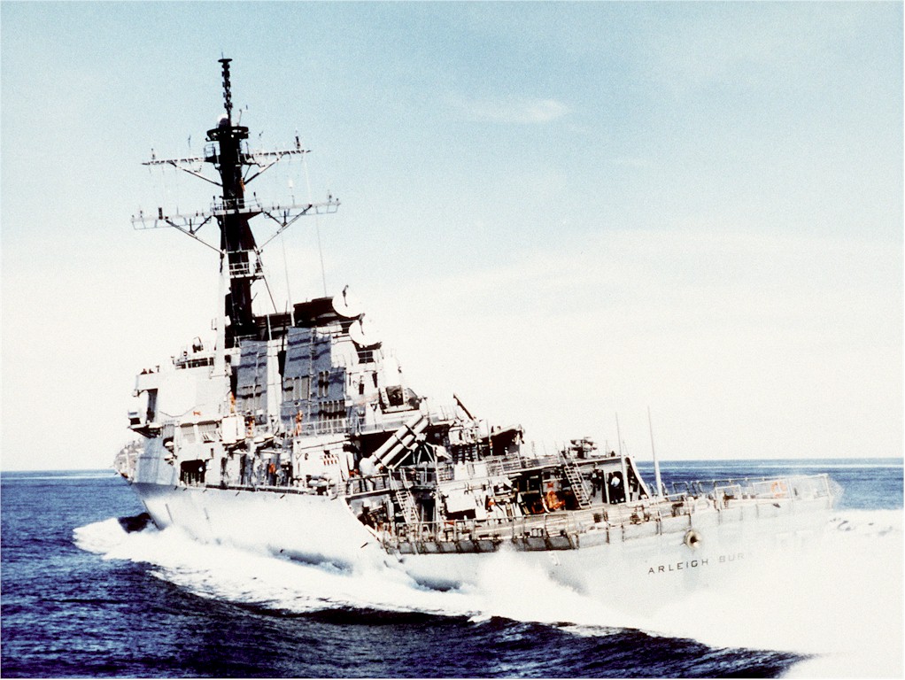 | 229k | USS Arleigh Burke (DDG-51) underway at sea, circa 1991. Naval History and Heritage Command photo NH 106827-KN. | Robert Hurst | |