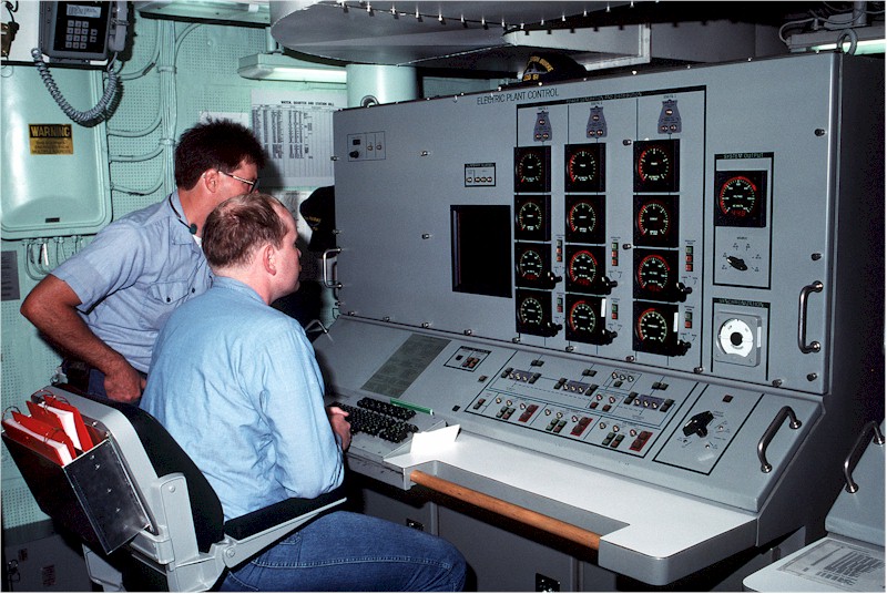 | 151k | DN-ST-92-03922. Two sailors work at the electric plant control console in an engineering space aboard the guided missile destroyer USS Arleigh Burke (DDG 51). Photo by James Giusti, 01 January 1991. | Bill Gonyo | |