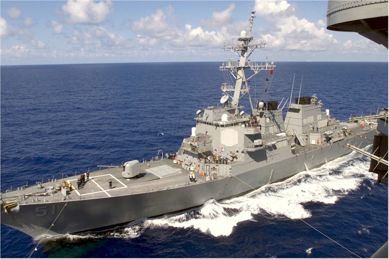 | 126k | DN-SD-03-12568, 001015-N-1110A-501. The guided missile destroyer USS Arleigh Burke (DDG 51) steams along side the USS Harry S. Truman (CVN 75), for refueling at sea (RS). Photo by PH1 Tina Sckerman, October 15 2000. | Bill Gonyo | |