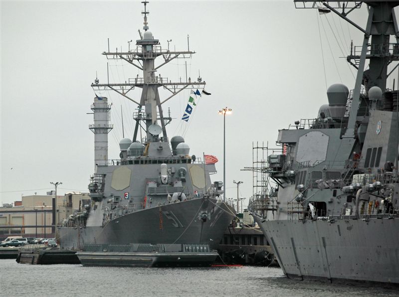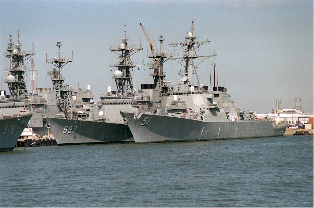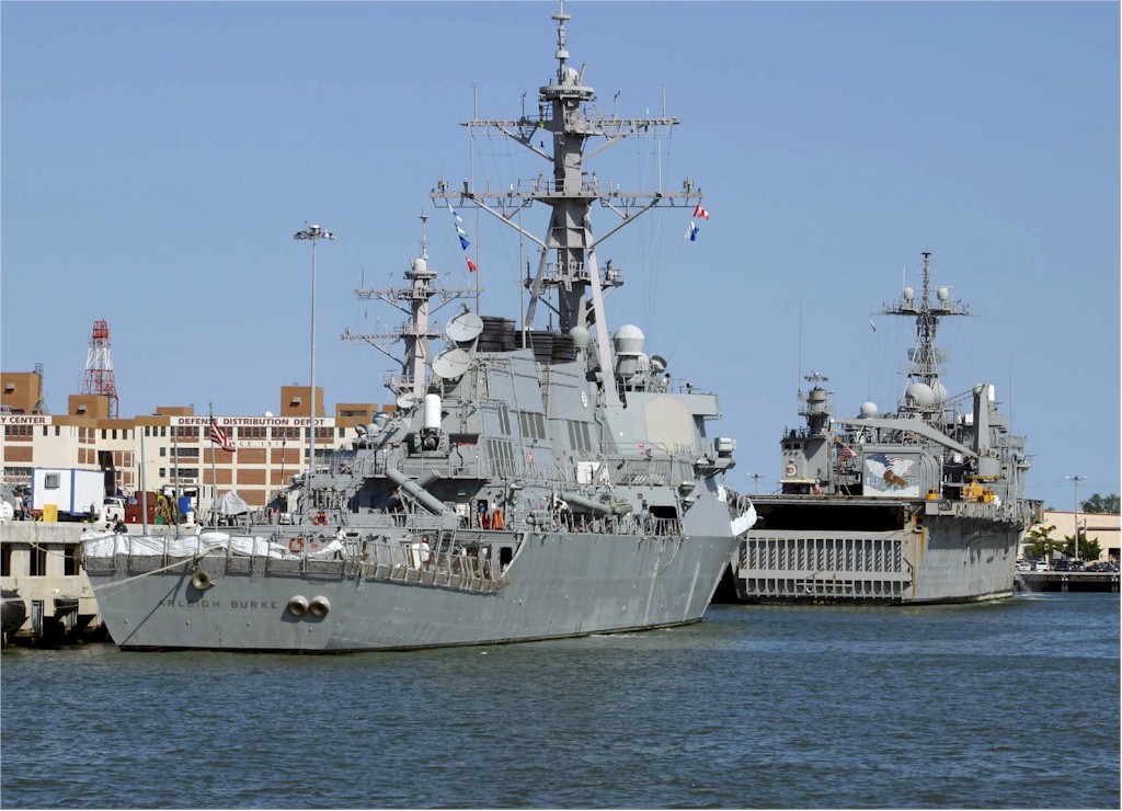 | 101k | Norfolk, VA, September 12 2006, the Arleigh-Burke class guided-missile destroyers USS Laboon (DDG 58) and USS Arleigh Burke (DDG 51) moored pier side in Naval Station Norfolk undergoing a maintenance period. Copyright by terms of Creative Commons. Photo provided by T.M. Wolf. | Bill Gonyo | |