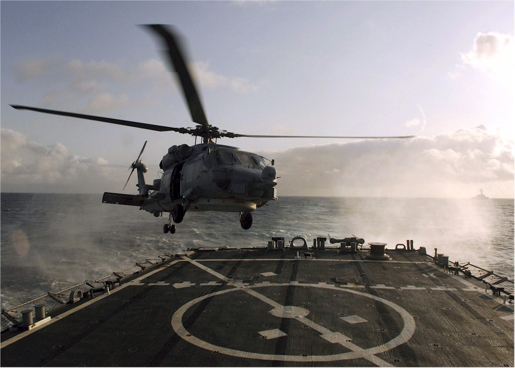 | 156k | 070813-N-8132M-019. Indian Ocean, August 13 2007, a SH-60B Seahawk lands on the flight deck of the guided-missile destroyer USS Arleigh Burke (DDG 51) during flight operations. Arleigh Burke is underway on a schedule six-month deployment in support of the global war on terrorism. U.S. Navy photo by Mass Communication Specialist Seaman Kiona Mckissack. | Robert M. Cieri | |