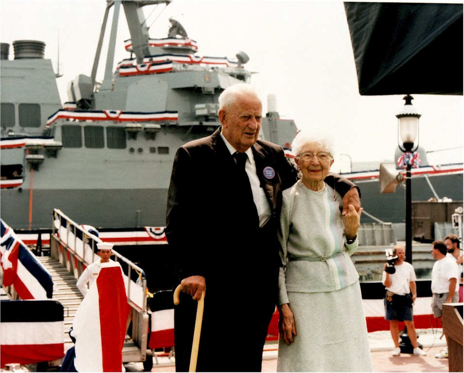 | 76k | Arleigh and Roberta Burke, at the launching of the USS Arleigh Burke (DDG 51), Bath Iron Works, (BIW) Bath, ME, 16 September 1989. | Steven A. Cardali | |