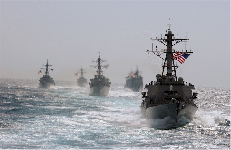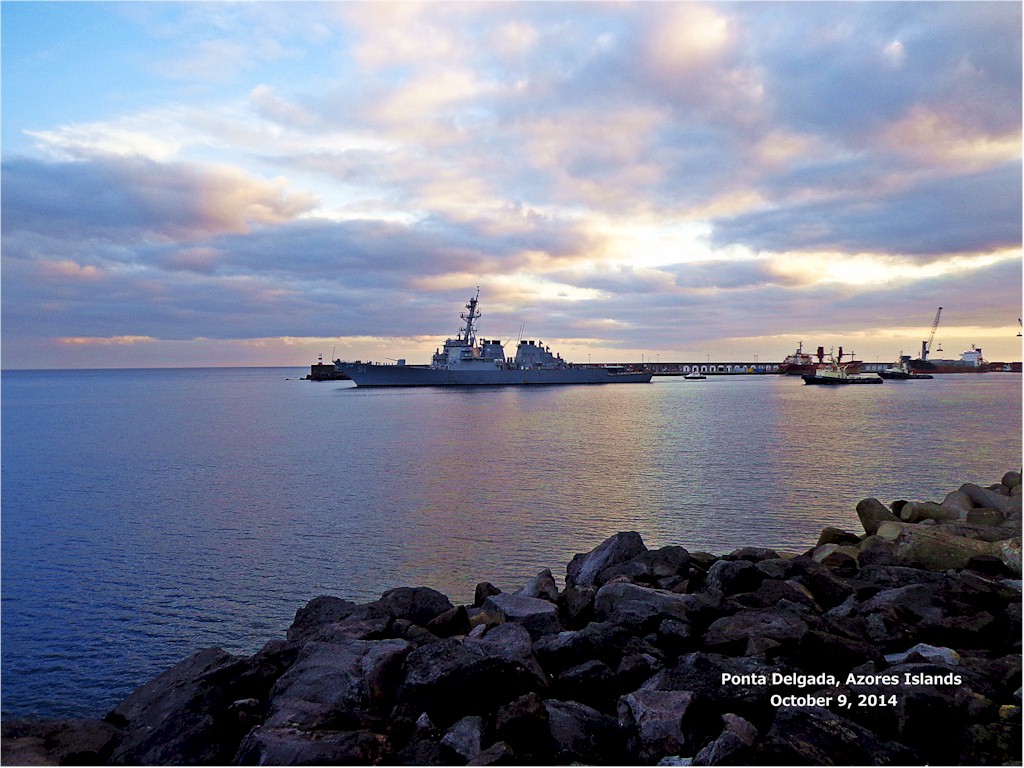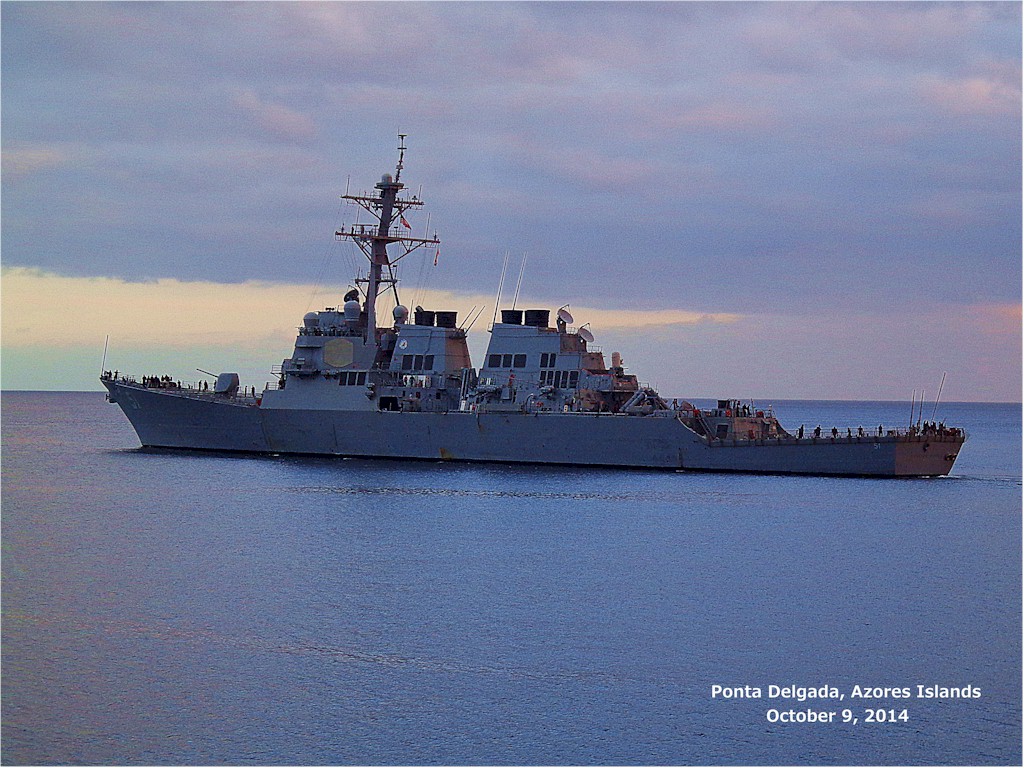 | 105k | 140220-N-EI510-385. Atlantic Ocean, February 19 2014, the Ticonderoga-class guided-missile cruiser USS Philippine Sea (CG 58) leads the Arleigh Burke-class guided-missile destroyers USS Arleigh Burke (DDG 51) and USS Roosevelt (DDG 80) while underway. Philippine Sea, Arleigh Burke and Roosevelt are deployed as part of the George H. W. Bush Carrier Strike Group in support of maritime security operations, theater security cooperation efforts and missions in support of Operation Enduring Freedom in the U.S. 5th and 6th Fleet areas of responsibility. U.S. Navy photo by Mass Communication Specialist 3rd Class Scott Ba. | Robert M. Cieri | |