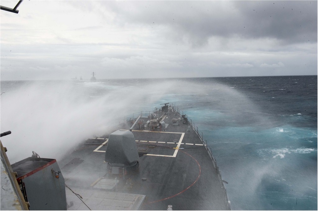 | 100k | 131126-N-AP176-033. Atlantic Ocean, November 26 2013, waves crash over the bow of the guided-missile destroyer USS Arleigh Burke (DDG 51) during a simulated straits transit exercise. Arleigh Burke is conducting its final pre-deployment evaluation with the George H.W. Bush Carrier Strike Group. U.S. Navy photo by Mass Communication Specialist 2nd Class Jeff Atherton. | Robert M. Cieri | |