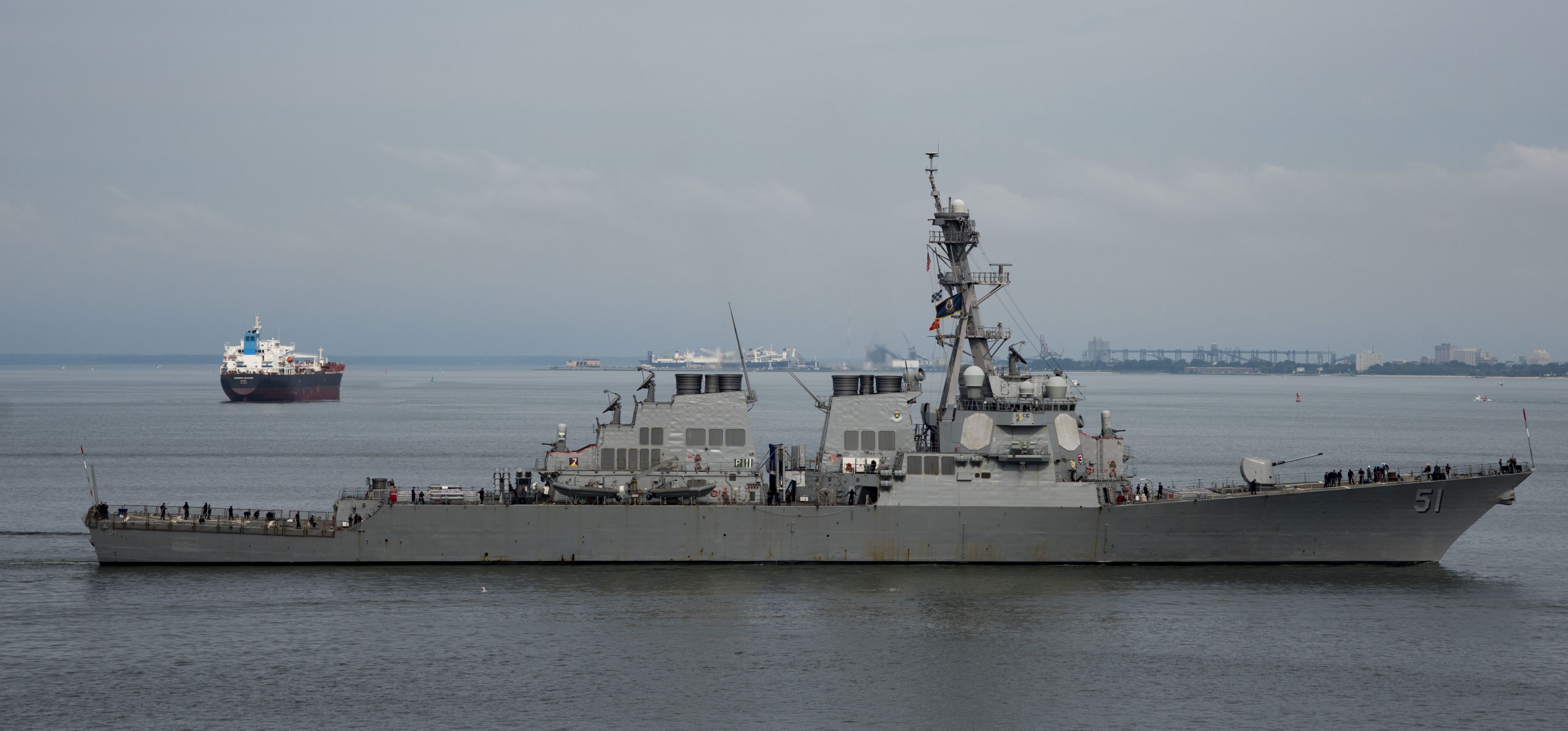 | 409k | 170718-N-QI061-0031 Norfolk, July 18, 2017. The guided-missile destroyer USS Arleigh Burke (DDG 51) departs Naval Station Norfolk. (U.S. Navy photo by Mass Communication Specialist 3rd Class Nathan T. Beard/Released) | Dave Wright | |