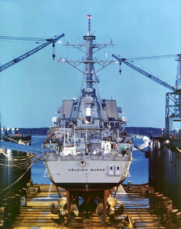 | 138k | June 2010, a stern view of the guided missile destroyer USS Arleigh Burke (DDG-51) in floating dry dock AFDB-3. | Bill Gonyo | |