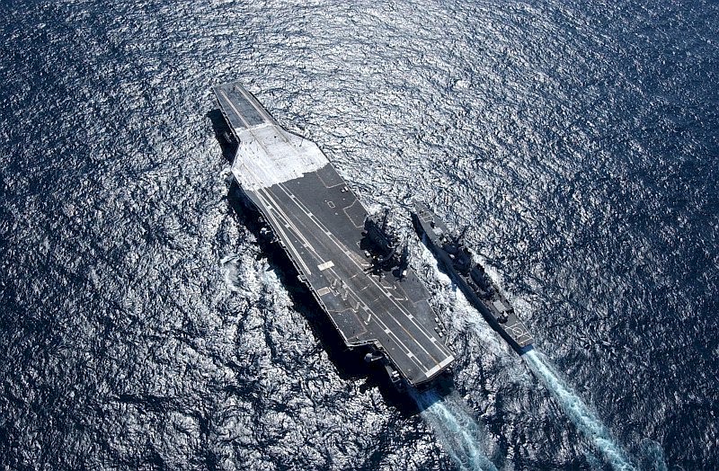 | 67k | Pacific Ocean, August 14 2007, Nimitz (CVN-68), Kitty Hawk (CV-63) and John C. Stennis (CVN-74) Carrier Strike Groups transit in formation during a joint photo exercise (PHOTOEX) during Valiant Shield 2007, the largest joint exercise in the Pacific this year. Held in the Guam operating area, Valiant Shield 2007 included 30 ships, more than 280 aircraft and more than 20,000 service members from the Navy, Air Force, Marine Corps, and Coast Guard. The aerial formation, led by an Air Force B-52 Stratofortress, consists of aircraft from the carrier strike groups as well as Air Force aircraft. Ships are, left to right: guided missile destroyer USS Chafee (DDG-90); nuclear-propelled aircraft carrier USS Nimitz (CVN-68), followed by the guided missile cruiser USS Princeton (CG-59) and the guided missile destroyers USS John Paul Jones (DDG-53) and USS Pinckney (DDG-91); nuclear-propelled attack submarine USS Hampton (SSN-767); aircraft carrier USS Kitty Hawk (CV-63), followed by the guided missile cruiser USS Cowpens (CG-63) and guided missile destroyer USS Mustin (DDG-89); nuclear-propelled attack submarine USS Key West (SSN-722); nuclear-propelled aircraft carrier USS John C. Stennis (CVN-74), followed by the guided missile cruiser USS Antietam (CG-54) and the guided missile destroyers USS Preble (DDG-88) and USS O'Kane (DDG-77); the Arleigh Burke-class guided missile destroyer on the extreme right has not been positively identified, but is possibly USS Paul Hamilton (DDG-60). | Fabio Peña |
