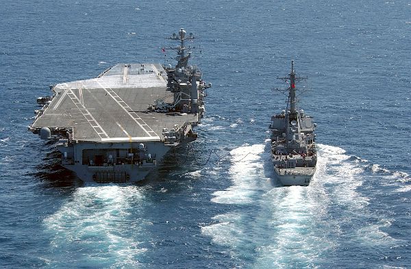 | 282k | Pacific Ocean, April 3 2003, the guided missile destroyer USS John Paul Jones (DDG-53) pulls along side USS John C. Stennis (CVN-74) during an underway replenishment at sea (RAS). The aircraft carrier was conducting propulsion, navigation and damage control training exercises in the southern California operating area. U.S. Navy photo by Photographer's Mate 3rd Class Joshua Word (# 030403-N-4768W-160). | Fabio Peña |