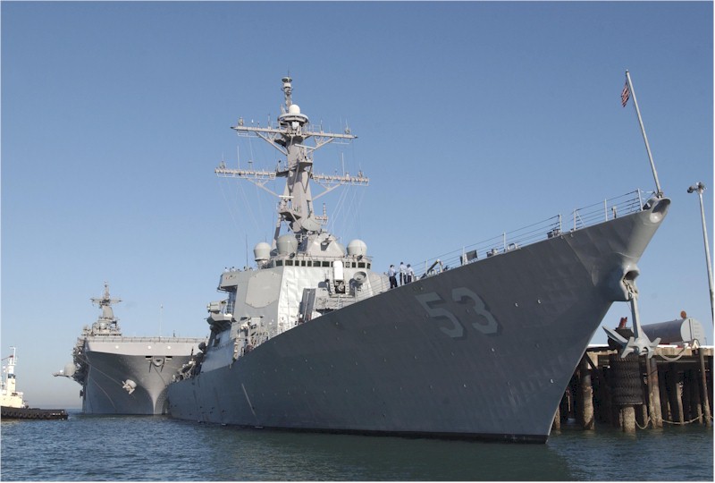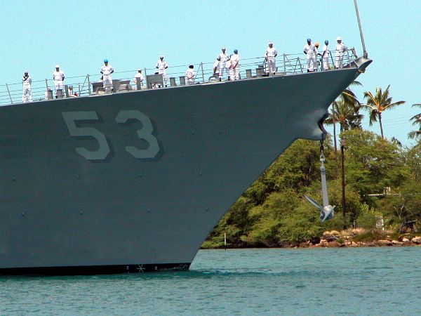 | 52k | 042806-N-0373Q-850, Naval Station Pearl Harbor, HI, June 29 2004, sailors aboard the Arleigh Burke-class guided missile destroyer USS John Paul Jones (DDG 53) man the rails as the ship transits the channel into Pearl Harbor, Hawaii. John Paul Jones is visiting Pearl Harbor to take part in Rim of the Pacific (RIMPAC) 2004. U.S. Navy photo by Journalist 2nd Class Mario A. Quiroga. | Tony Cowart |