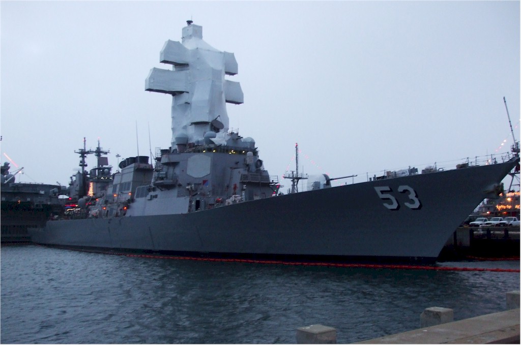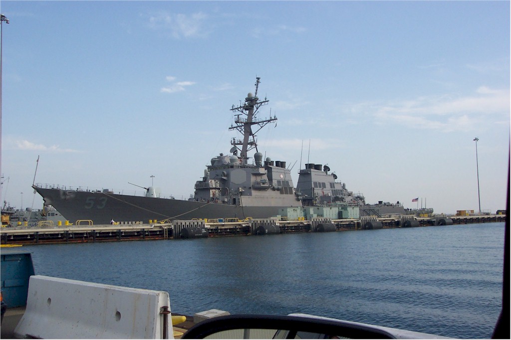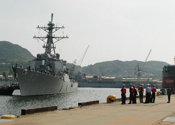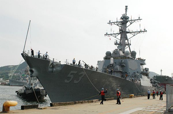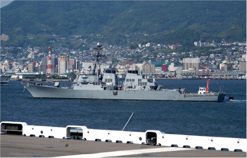 | 125k | DN-SD-06-13059, 050517-N-2385R-071. A port view of the US Navy (USN) Arleigh Burke Class Guided Missile Destroyer, USS John Paul Jones (DDG 53) as she arrives in Sasebo, Nagasaki Prefecture, Japan (JPN), on a routine port visit, while participating in Exercise TALISMAN SABRE. Photo by PH3 Yesenia Rosas, May 17 2005. | Bill Gonyo |