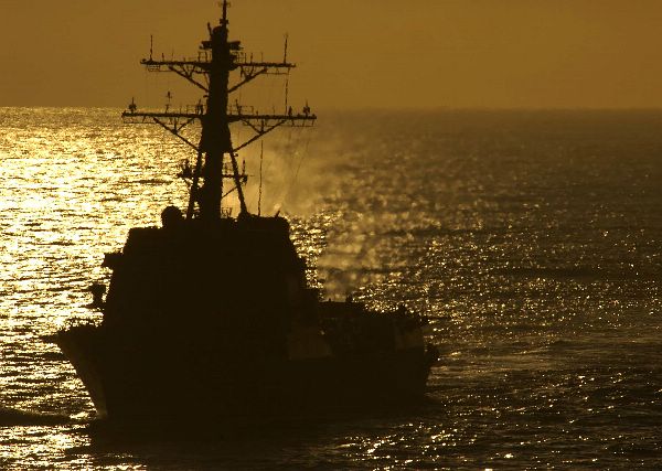 | 148k | East China Sea, March 16 2008, the guided-missile destroyer USS John Paul Jones (DDG 53) steams into position during an Expeditionary Strike Force (ESF) exercise. The Nimitz Carrier Strike Group (CSG) recently participated in an ESF with the Essex (LHD 2) Expeditionary Strike Group (ESG). The ESF exercise was designed to test the ability of the Strike Groups to plan and conduct multi-task force operations across a broad spectrum of naval disciplines and to refresh skills in completing complex missions that require capabilities that are broader in scope than the individual Strike Groups can provide alone. U.S. Navy photo by Mass Communication Specialist 3rd Class Joseph Pol Sebastian Gocong, ID# 080316-N-5484G-077. | Robert M. Cieri |