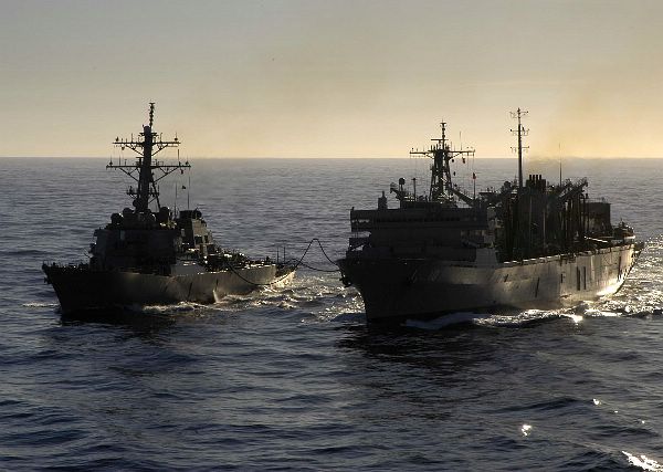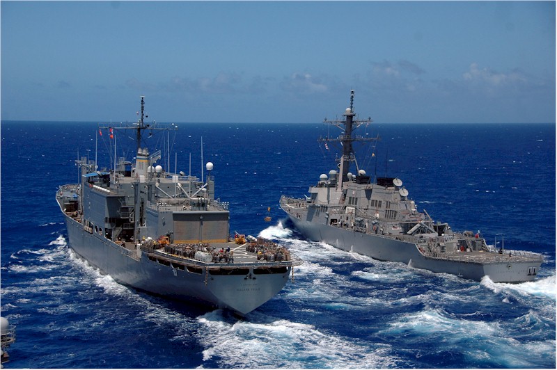 | 48k | 060117-N-7842G-119, Pacific Ocean, January 17 2006, the Arleigh-Burke class destroyer USS John Paul Jones (DDG 53) conducts an underway replenishment with the Military Sealift Command (MSC) fast combat support ship USNS Bridge (T-AOE 10) off the coast of Southern California. U.S. Navy Photo by Photographer's Mate Airman Mary E. Guiney. | Tony Cowart |