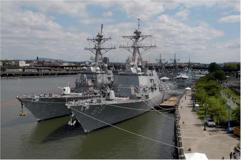| 111k | 060610-N-6247M-007. Portland, OR, June 10 2006, guided missile destroyers USS John Paul Jones (DDG 53) and USS Preble (DDG 88) moored in Portland for the 99th Rose Festival. U.S. Navy photo by Photographer's Mate 1st Class Bruce McVicar. | Bill Gonyo |