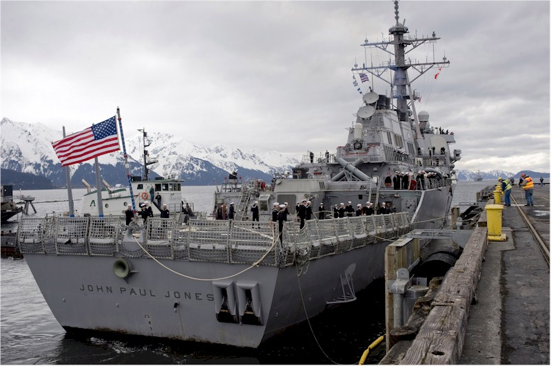 | 45k | 080503-F-3108S-009. Seward, Alaska, May 3 2008, the guided-missile destroyer USS John Paul Jones (DDG 53) arrives in Seward harbor to resupply before before participating in the two-week Northern Edge joint exercise. Northern Edge involves units from all U.S. military services to enhance interoperability and cooperation. U.S. Air Force photo by Airman 1st Class Jonathan Steffen. | Robert M. Cieri |