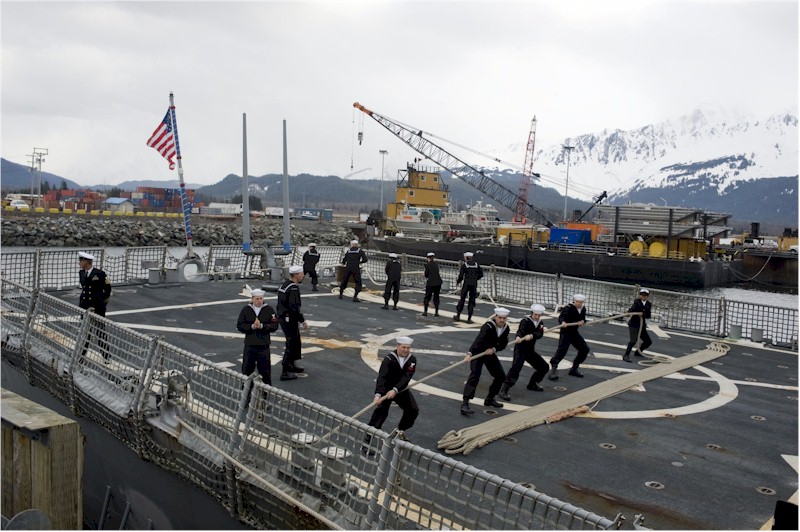 | 129k | 080503-F-3108S-112. Seward, Alaska, May 3 2008, crew members of the guided-missile destroyer USS John Paul Jones (DDG 53) make a port visit to resupply before participating in the two-week Northern Edge joint exercise. Northern Edge involves units from all U.S. military services to enhance interoperability and cooperation. U.S. Air Force photo by Airman 1st Class Jonathan Steffen. | Robert M. Cieri |