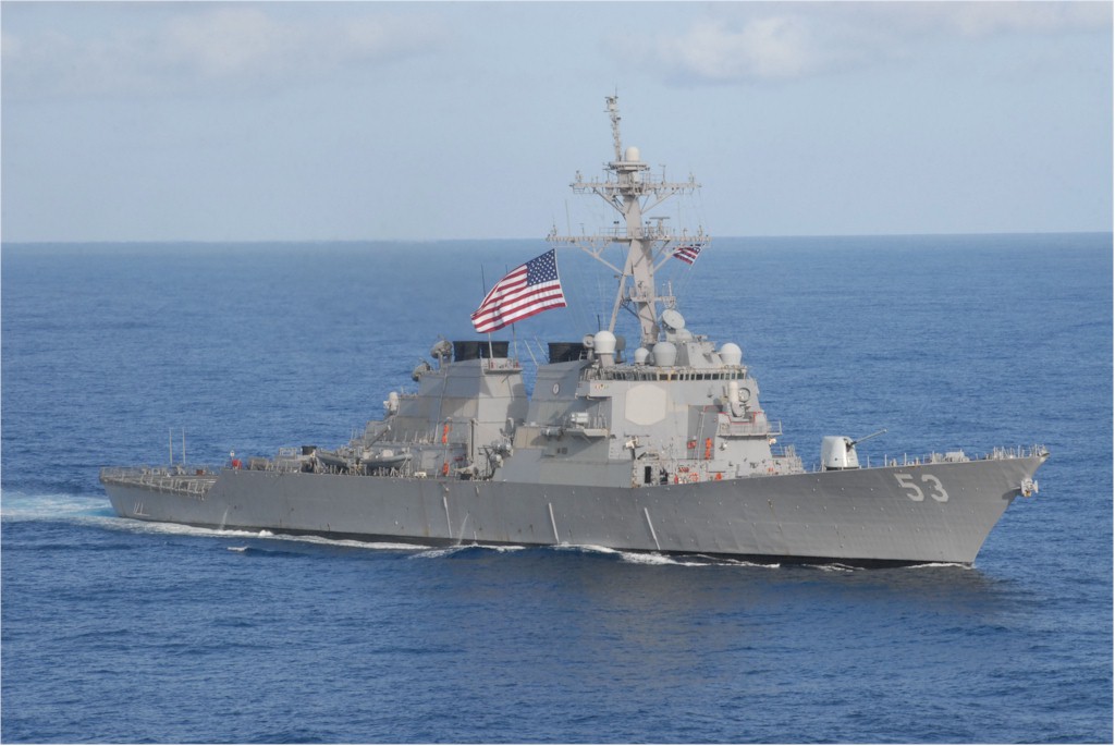 | 130k | 080316-N-1242B-027. Pacific Ocean, March 16 2008, the guided-missile destroyer USS Joun Paul Jones (DDG 53) during an expeditionary strike force exercise between Essex Expeditionary Strike Group and the Nimitz Carrier Strike Group while underway. U.S. Navy photo by Mass Communication Specialist 1st Class Jeffrey Ballge. | Robert M. Cieri |