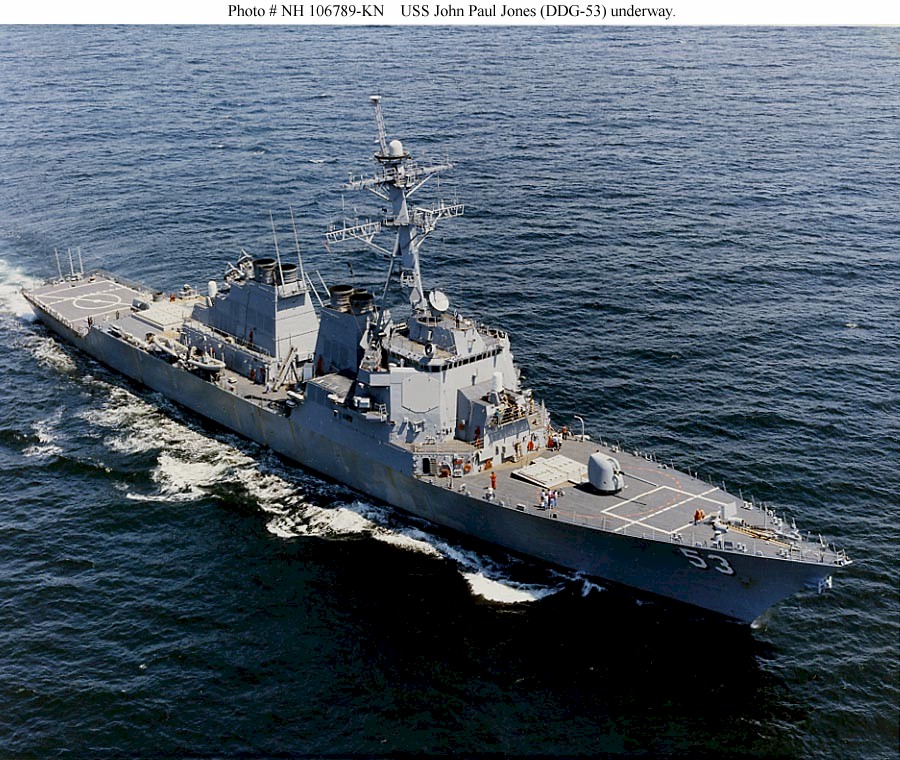 | 176k | 070814-N-3136P-068. Pacific Ocean, August 14 2007, the Arleigh Burke-class guided-missile destroyer USS John Paul Jones (DDG 53) underway, during Exercise Valiant Shield 2007. U.S. Navy photo by Mass Communication Specialist 3rd Class Jimmy C. Pan. | Bill Gonyo |