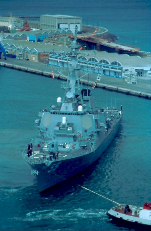 | 94k | The USS Stout (DDG 55) and the USS McFaul (DDG 74) are shored together at Port Everglades, Fla., April 30 2002. The two missile guided destroyers are home stationed in Norfolk, Va. Photo by Navy Petty Officer 3rd Class Andrew Pratt. | Bill Gonyo |