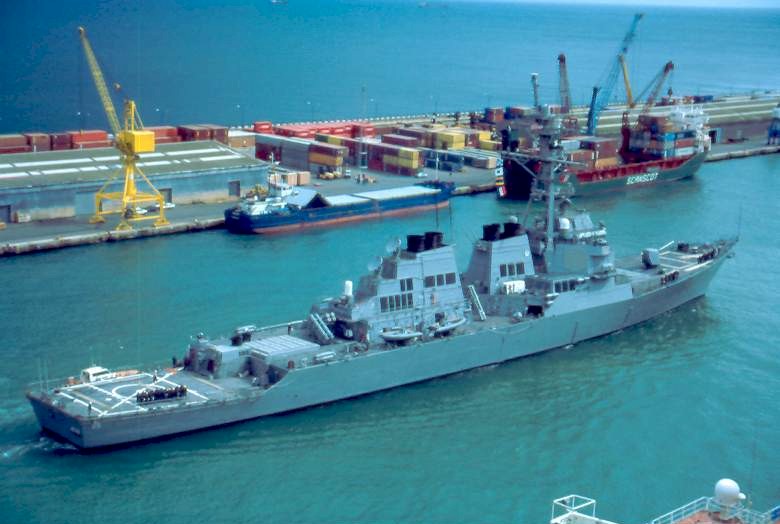 | 156k | USS Ramage at Norfolk in the summer of 1995 taken on a water tour. In the background you can also see DDG-55 USS Stout and the two Kidd Class destroyers DDG-995 Scott and DDG-993 Kidd with the USS Mount Whitney LCC-20. | Cody Shaffer |