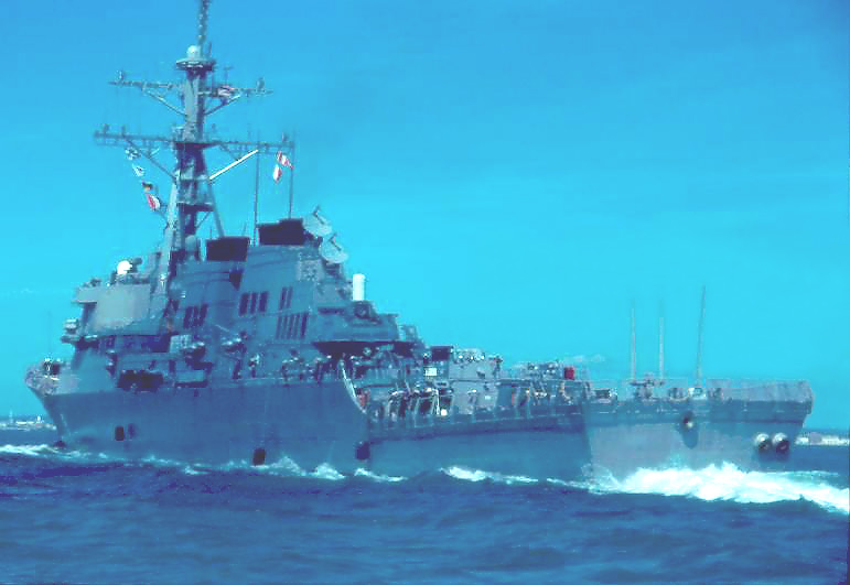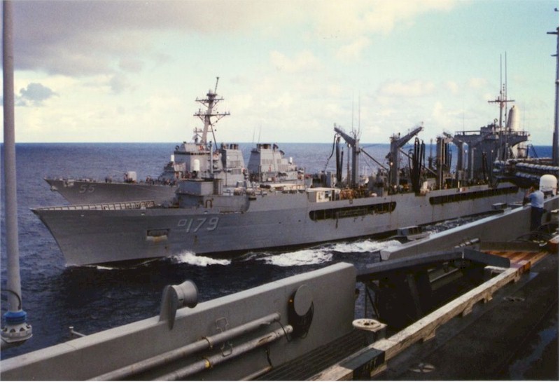 | 92k | USS Stout (DDG-55) and USS Merrimack (AO-179) during an UNREP viewed from CVN-73 George Washington in the Atlantic, Novermber 1995. | Wendell R McLaughlin Jr |