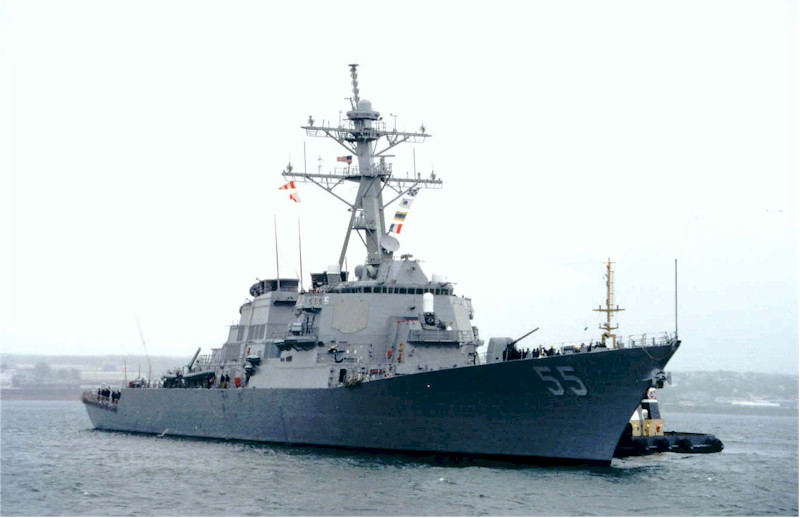 | 162k | 060524-N-0635C-556. May 24 2006, the guided-missile destroyer USS Stout (DDG 55) returns to her homeport of Naval Station Norfolk, Va., after participating in Partnership of the Americas, a maritime training and readiness deployment of U.S. Naval Forces with Caribbean and Latin American countries in support of U.S. Southern Command objectives for enhanced maritime security. U.S. Navy photo by Lithographer 2nd Class Pamela Coxe. | Robert M. Cieri |