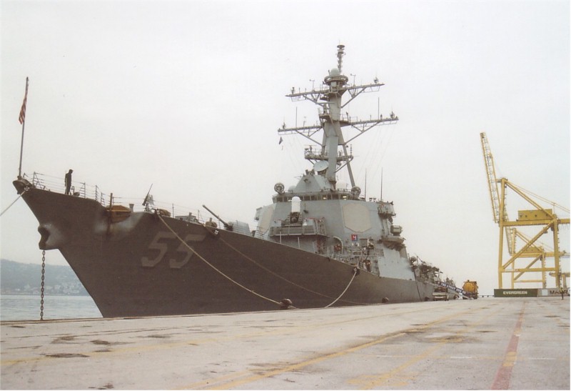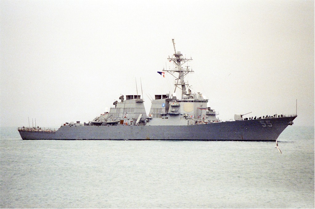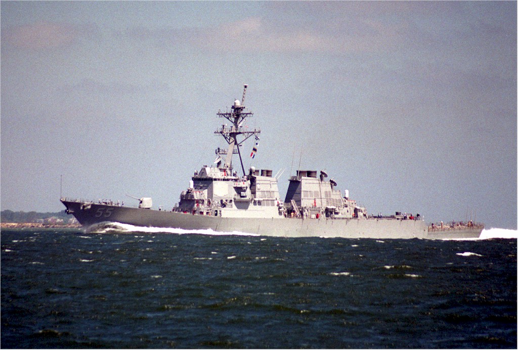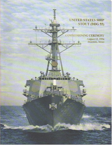 | 165k | USS Stout (DDG-55) underway at sea during pre-commissioning trials, circa mid-1994. Official U.S. Navy Photograph, from the collections of the Naval History and Heritage Command. Photo # NH 106831-KN. | Robert Hurst |