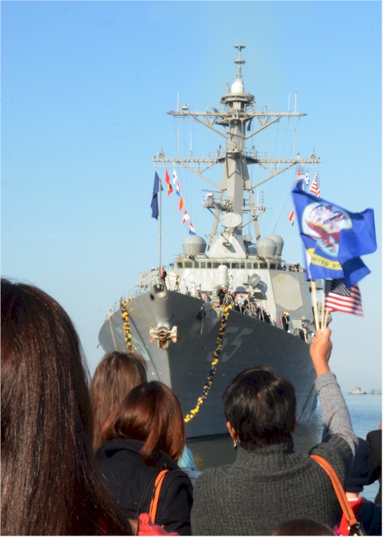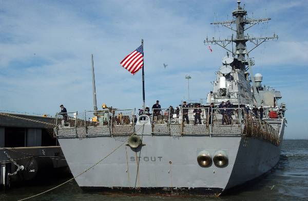 | 34k | 060523-N-1331S-043, Norfolk, VA, May 24 2006, the guided-missle destroyer USS Stout (DDG 55), an element of the George Washington Carrier Strike Group (GWCSG), returns home to Naval Station Norfolk after completing a three-month deployment. U.S Navy photo by Photographer's Mate Airman Jason Smith. | Tony Cowart |