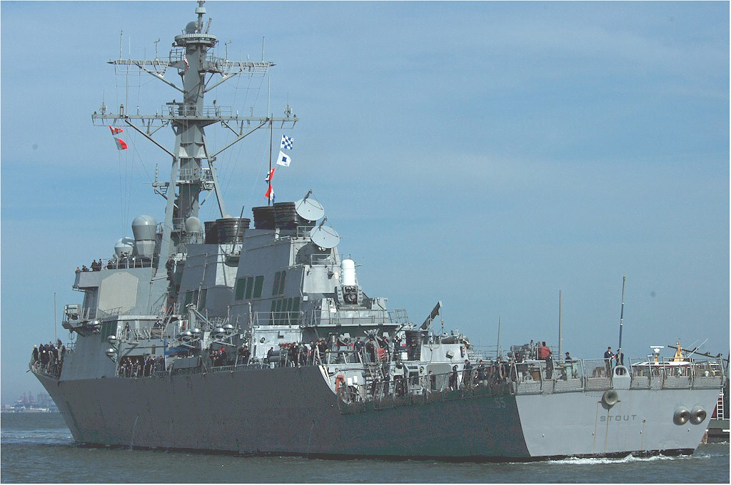 | 134k | 110303-N-7730P-010. Mediterranean Sea, March 3 2011, the guided-missile destroyer USS Stout (DDG 55) transits in the U.S. 6th Fleet area of responsibility during a routine ballistic missile defense deployment. Stout is supporting maritime security cooperation efforts. (U.S. Navy photo by Mass Communication Specialist 2nd Class Gary A Prill. | Bill Gonyo |