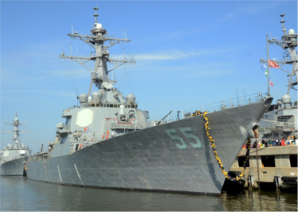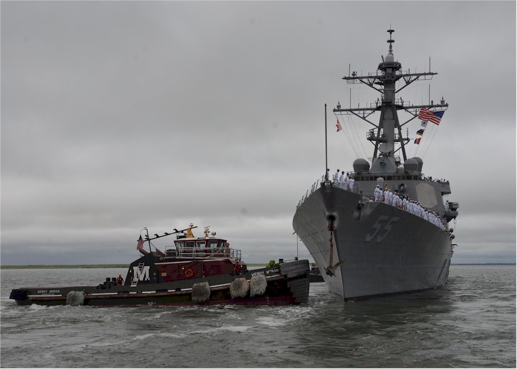 | 121k | 130818-N-WJ261-099. Norfolk, Virginia, August 18 2013, the guided-missile destroyer USS Stout (DDG 55) departs Naval Station Norfolk for deployment to the U.S. 6th Fleet area of responsibility. U.S. Navy photo by Chief Mass Communication Specialist Karen E. Cozza, USN. | Robert M. Cieri |