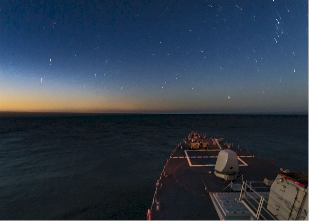 | 129k | 151030-N-KE519-014. Atlantic Ocean, October 30 2015, the Arleigh Burke-class guided missile destroyer USS Stout (DDG 55) transits the Atlantic Ocean. Stout is underway conducting routine training and operations in preparation for its upcoming deployment. U.S. Navy photo by Mass Communication Specialist 2nd Class Edward Guttierrez III. | Ron Reeves |