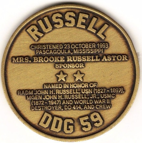 | 96k | Christening Coin from the USS Russell DDG-59 held at Pascagoula, MS on 23 October 1993. | Robert M. Cieri |
