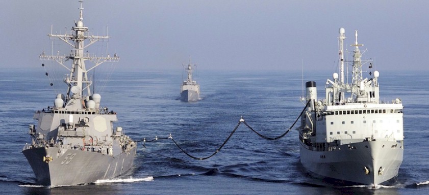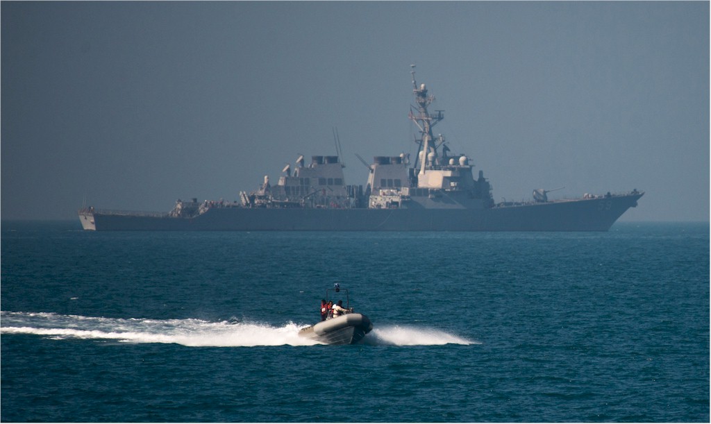 | 111k | 160214-N-CJ186-187. Arabian Gulf, February 14 2016, a ridged hull inflatable boat, launched from the Arleigh Burke-class guided-missile destroyer USS Russell (DDG 59), participates in a monthly Iraqi bilateral exercise. The Iraqi bilateral is a monthly exercise with U.S. Navy, U.S. Coast Guard, and the Iraqi navy. The U.S. participates in bilateral exercises with partner nations in order to build and strengthen solid partnerships throughout the region. Commander, Task Force 55 controls surface forces including U.S. Navy coastal patrol craft and U.S Coast Guard patrols boats in the U.S. 5th Fleet area of operations. U.S. Navy Combat Camera photo by Mass Communication Specialist 2nd Class Torrey W. Lee. | Ron Reeves |