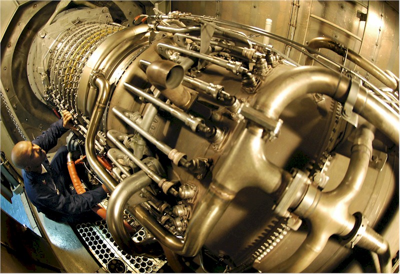| 168k | 060622-N-4166B-046. Philippine Sea, June 22 2006, Gas Turbine Technician Mechanical 1st Class Phil Berry conducts a routine check on one of four LM-2500 gas turbine engines used for propulsion aboard the guided-missile destroyer USS Russell (DDG 59). Russell and the Abraham Lincoln Strike group are currently participating in Exercise Valiant Shield 2006. Valiant Shield focuses on integrated joint training among U.S. military forces, enabling real-world proficiency in sustaining joint forces and in detecting, locating, tracking and engaging units at sea, in the air, on land and cyberspace in response to a range of mission areas. U.S. Navy photo by Photographer's Mate 3rd Class Jordon R. Beesley. | Bill Gonyo |