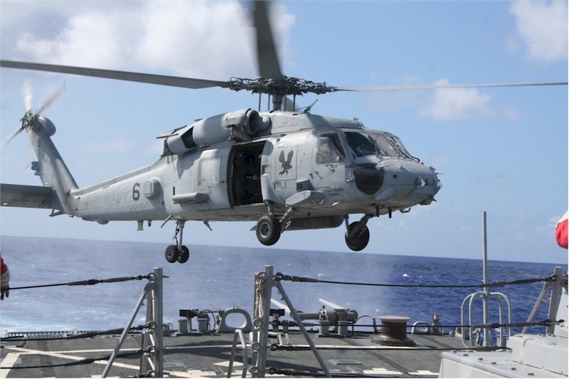 | 191k | 101116-N-3666S-026. Pacific Ocean, November 16 2010, an SH-60 Seahawk helicopter from Helicopter Squadron Light (HSL) 37 takes off from the guided-missile destroyer USS Russell (DDG 59), during Exercise Koa Kai 11-1 off the coast of Hawaii. Koa Kai encompassed Hawaii-based surface, submarine and aviation assets, and other commands within the Hawaii region. US Navy photo by MC2 Robert Stirrup. | Robert M. Cieri |