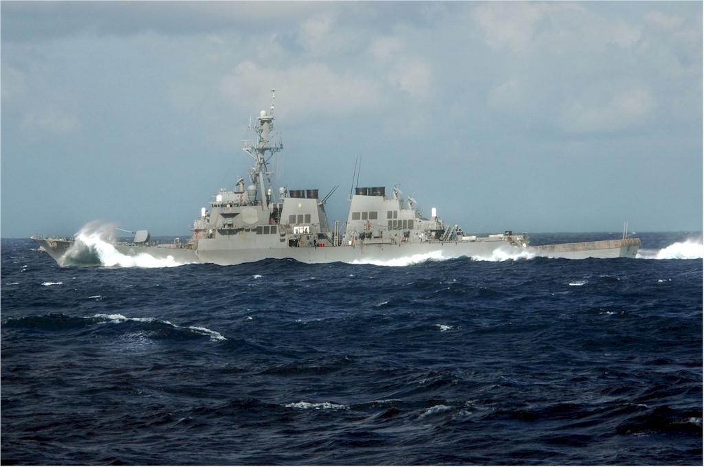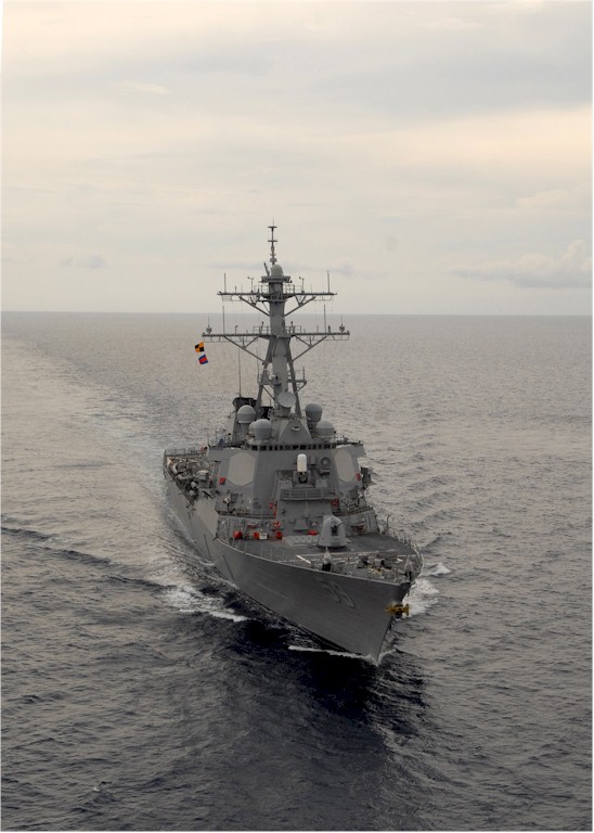 | 91k | 080415-N-7981E-762. April 15 2008, the Arleigh Burke-class guided-missile destroyer USS Russell (DDG 59) underway near Singapore. The Russell and other ships assigned to Carrier Strike Group Nine are on a scheduled seven-month deployment to the 5th Fleet area of responsibility. U.S. Navy photo by Mass Communication Specialist 2nd Class James R. Evans. | Robert M. Cieri |