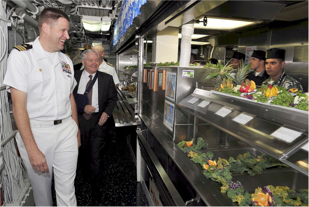 | 228k | 080221-F-6655M-085. Pearl Harbor, Hawaii, 21 February 2008, Secretary of Defense Robert M. Gates tours the enlisted mess deck with Cmdr. Jeffrey Weston, commanding officer of USS Russell (DDG 59). U.S. Air Force photo by Tech. Sgt. Jerry Morrison. | Robert M. Cieri |