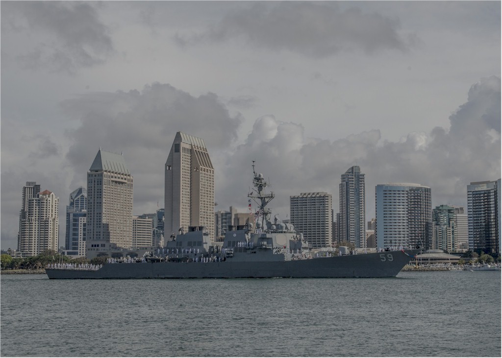 | 148k | 160410-N-DX349-043. Coronado, California, April 10 2016, the guided-missile destroyer USS Russell (DDG 59) returns to her homeport of San Diego after completing a seven-month deployment to the U.S. 5th and 7th Fleet area of responsibility. The ship and crew operated independently and with two separate carrier strike groups to conduct maritime operations and promote U.S. and partner-nation presence. U.S. Navy photo by Mass Communication Specialist 2nd Class Phil Ladouceur. | Ron Reeves |