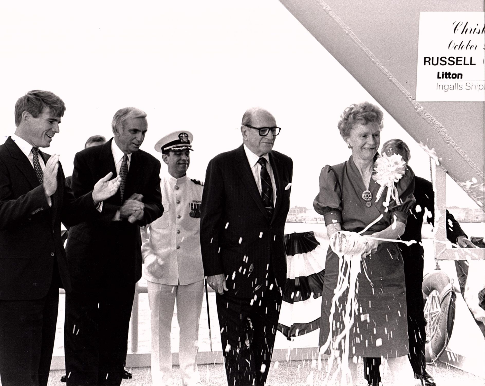 | 362k | USS Russell (DDG 59) is christened by Mrs. Brooke Russell Astor, daughter of the ship's namesake. | Dale Hargrave |