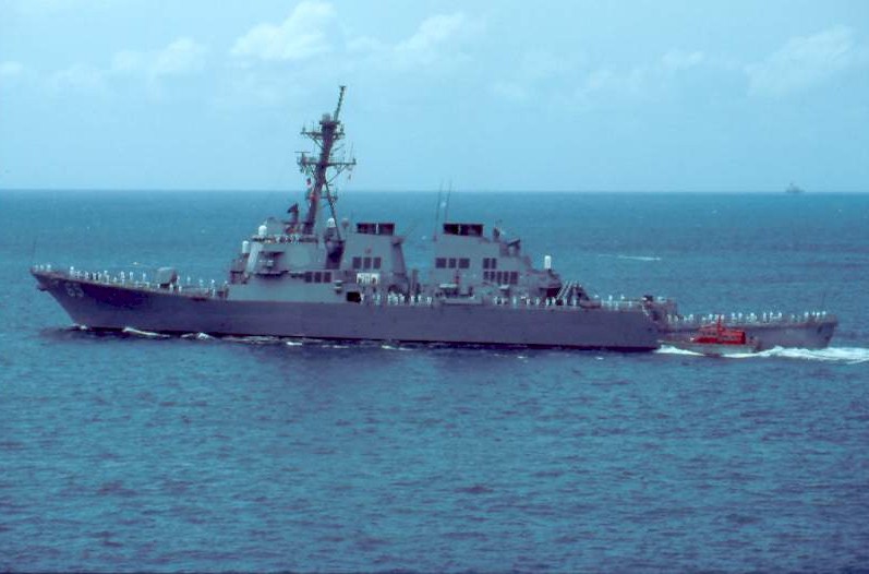 | 61k | At sea aboard USS Benfold (DDG 65) July 30 2002, sailors aboard the guided missile destroyer prepare for an underway replenishment (UNREP) while the destroyer USS Fitzgerald (DDG 62) prepares to take station alongside Benfold. Both vessels are participating in Fleet Battle Experiment Juliet (FBE-J) in the Pacific Ocean. U.S. Navy photo by Photographer’s Mate 2nd Class Michael D. Kennedy. | Fred Weiss |