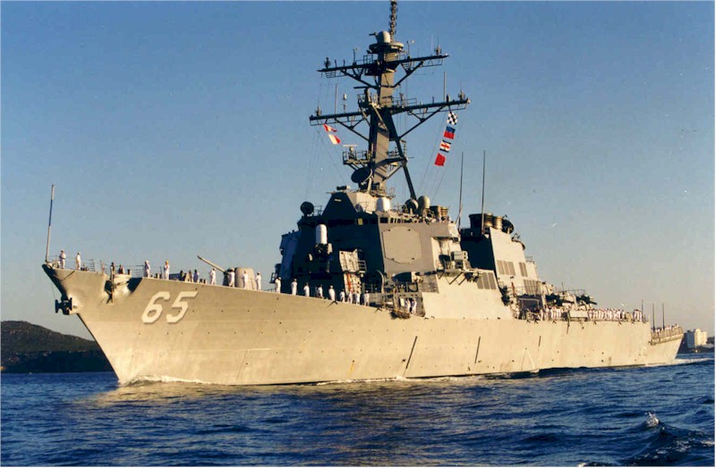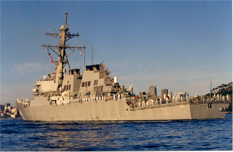 | 166k | 010326-N-1644C-001, March 28 2001, USS Benfold (DDG-65) gets underway on deployment in the South Pacific Ocean en route to its first port of Sydney, Australia. U.S. Navy photo by Photographer's Mate 1st Class Anthony C. Casullo. | Bill Gonyo |