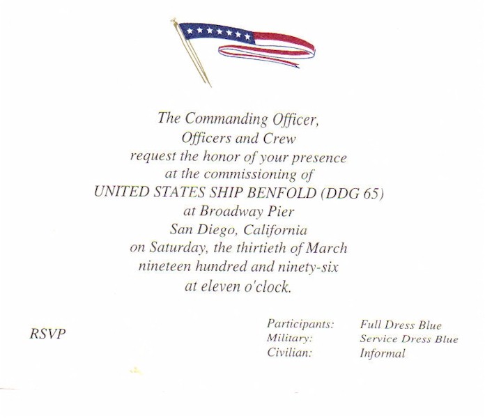 | 52k | The Official Invitation to the Commissioning Ceremony, which was held at Broadway Pier in San Diego, CA on 13 March 1996. | Robert M. Cieri |