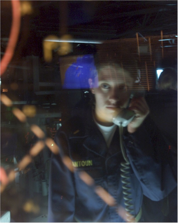 | 89k | 020731-N-5067K-001. Pacific Ocean, July 30 2002, Ensign Nicole E. Antoun stands duty as the guided missile-destroyer USS Benfold (DDG 65) Combat Information Center (CIC) Watch Officer. Benfold is participating in Fleet Battle Experiment Juliet (FBE-J) in the Pacific. FBE-J is part of training exercises supporting Millennium Challenge 2002 (MC-02), the nation's premier joint integrating event, bringing together both live field exercises and computer simulations throughout the Department of Defense. U.S. Navy photo by Photographer’s Mate 2nd Class Michael D. Kennedy. | Robert M. Cieri |