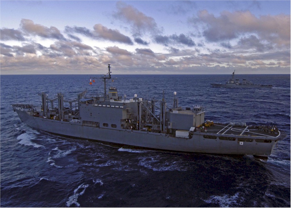| 182k | 041209-N-8539M-039. Pacific Ocean, December 9 2004, the Military Sealift Command (MSC) combat stores ship USNS Niagara Falls (T-AFS 3) and the guided-missile destroyer USS Benfold (DDG 65) prepare for an early morning replenishment at sea (RAS). Benfold, part of the Abraham Lincoln Strike Group is currently on a scheduled deployment to the Western Pacific Ocean. U.S. Navy photo by Photographer's Mate Airman Nicholas B. Morton. | Robert M. Cieri |