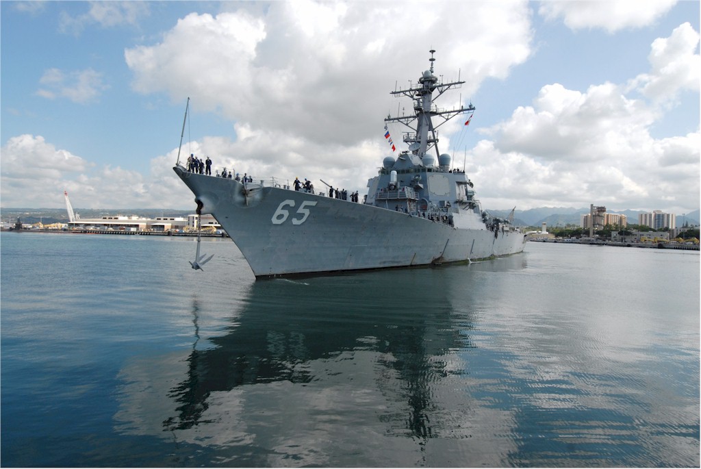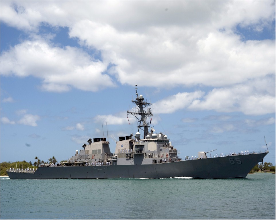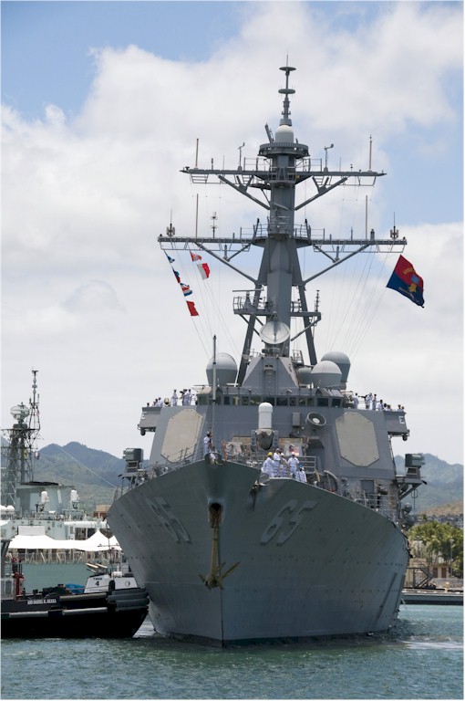 125k | The guided-missile destroyer USS Benfold (DDG-65) arrives at Joint Base Pearl Harbor-Hickam on 24 June 2010. The ship is visiting Hawaii to participate in Rim of the Pacific (RIMPAC) 2010, a biennial, multinational exercise designed to strengthen regional partnerships and improve multinational interoperability. U.S. Navy photo by Mass Communication Specialist 1st Class Woody Paschall. Navy News Service # 100624-N-4281P-087. | Robert Hurst |