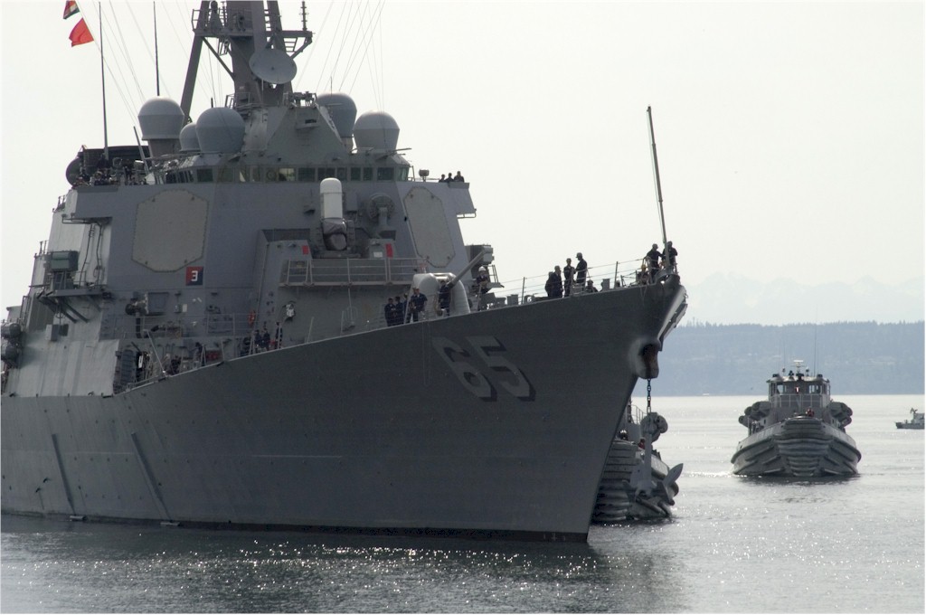 | 64k | 070515-N-3390M-001. May 15 2007, guided-missile destroyer USS Benfold (DDG 65) is assisted by a tug as she prepares to moor pier side at Naval Station Everett for a port visit. U.S. Navy photo by Mass Communication Specialist 2nd Class Douglas G. Morrison. | Robert M. Cieri |