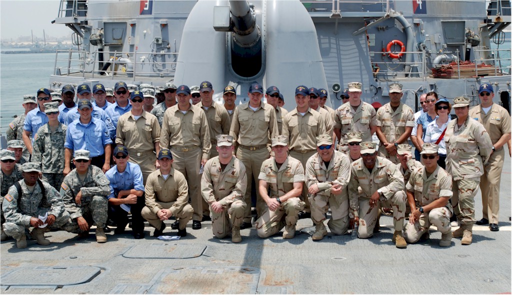 215k | 080724-N-7631T-001. Manama, Bahrain, members of the Surface Navy Association (SNA) Bahrain Chapter toured USS Benfold (DDG 65) and learned about the Navy’s ability to search, track, hand-off and intercept ballistic missiles -- a core element of the Navy’s Ballistic Missile Defense program (BMD). Benfold is currently deployed to the U.S. 5th Fleet area of operations to conduct Maritime Security Operations (MSO) which help develop security in the maritime environment. From security arises stability that results in global economic prosperity. MSO complements the counterterrorism and security efforts of regional nations and seek to disrupt violent extremists’ use of the maritime environment as a venue for attack or to transport personnel, weapons or other material. U.S. Navy Photo by Mass Communication Specialist 2nd Class Kevin Tidwell | Bill Gonyo |