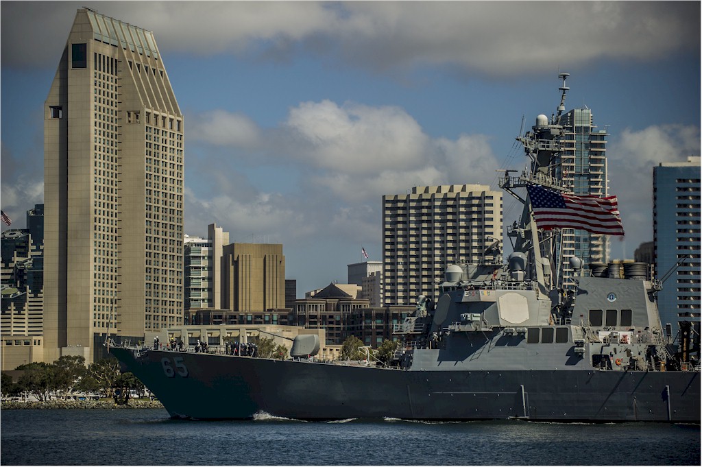 193k | 151002-N-ZS026-146. San Diego, October 2 2015, the Arleigh Burke-class guided-missile destroyer USS Benfold (DDG 65) departs Naval Base San Diego bound for Yokosuka, Japan to join the forward-deployed naval forces in the Pacific. U.S. Navy photo by Mass Communication Specialist 1st Class Trevor Welsh. | Ron Reeves |