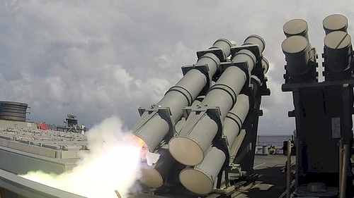 | 218k | 160913-N-PD309-001. Philippine Sea, September 13 2016, the Arleigh Burke-class guided-missile destroyer USS Benfold (DDG 65) conducts a live fire of a harpoon missile, with the Arleigh Burke-class guided-missile destroyer USS John S. McCain (DDG 56), as part of a sink exercise (SINKEX) during Valiant Shield 2016. Valiant Shield is a biennial, U.S. only, field-training exercise with a focus on integration of joint training among U.S. forces. This is the sixth exercise in the Valiant Shield series that began in 2006. Benfold is on patrol with Carrier Strike Group Five in the Philippine Sea supporting security and stability in the Indo-Asia-Pacific region. U.S. Navy photo by Sonar Technician (Surface) 2nd Class Aaron Lyons. | Ron Reeves |