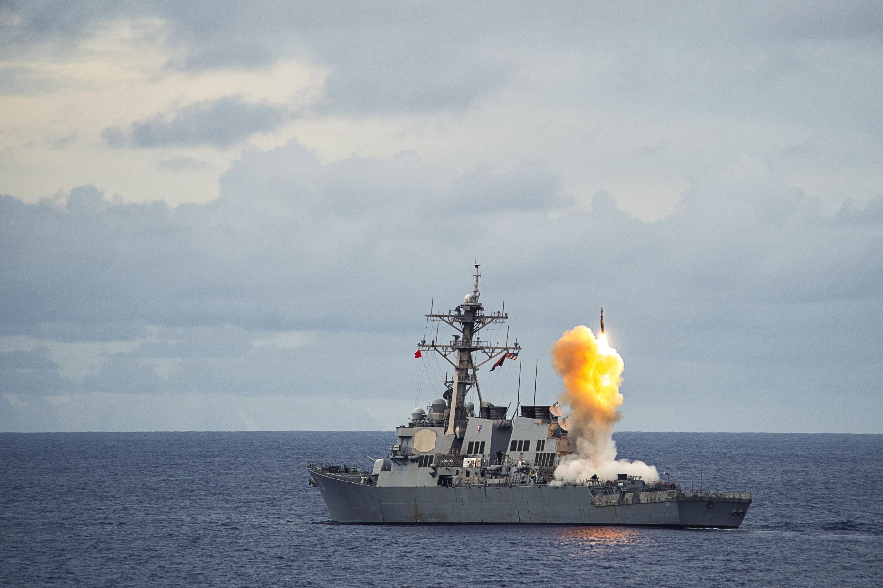 | 675k | 160919-N-XQ474-126. Philippine Sea, September 19 2016, the Arleigh Burke-class guided-missile destroyer USS Benfold (DDG 65) fires a standard missile (SM 2) at a target drone as part of a surface-to-air-missile exercise (SAMEX) during Valiant Shield 2016. Valiant Shield is a biennial, U.S. only, field-training exercise with a focus on integration of joint training among U.S. forces. This is the sixth exercise in the Valiant Shield series that began in 2006. Benfold is on patrol with Carrier Strike Group Five (CSG 5) in the Philippine Sea supporting security and stability in the Indo-Asia-Pacific region. U.S. Navy photo by Mass Communication Specialist 2nd Class Andrew Schneider. | Ron Reeves |
